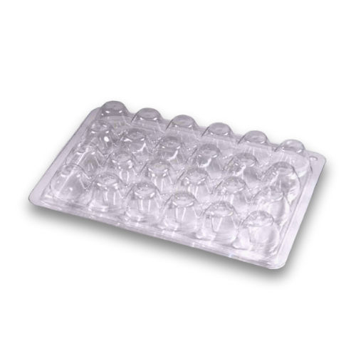 Caserolele pentru ouă de prepeliţe sunt realizate din plastic transparent și conțin 24 de locuri pentru ouă de prepeliță.