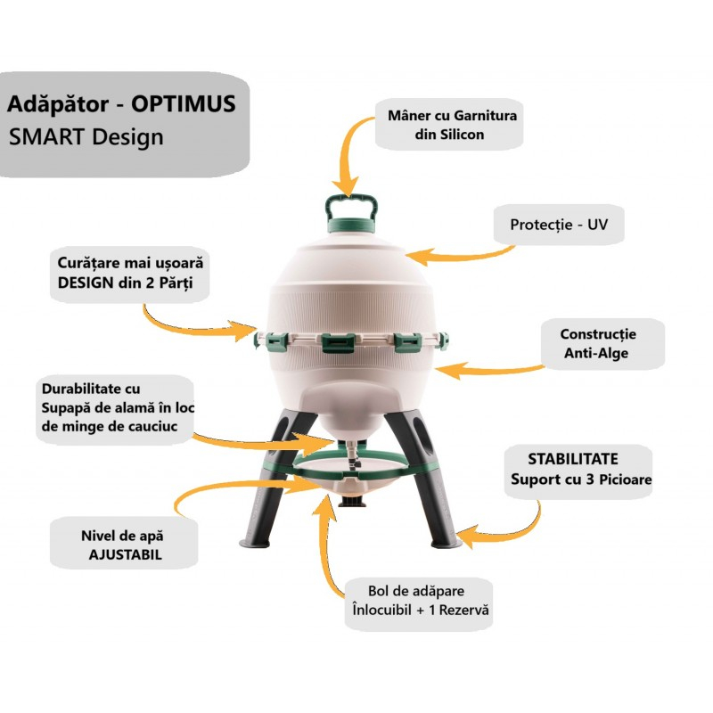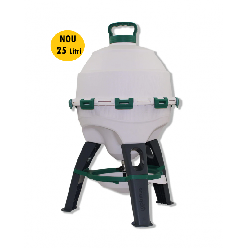Adăpătoare pentru păsări cu picioare la 25 litri -OPTIMUS, este un produs cu un design inovator, ideal pentru toate păsările de curte. Rezervorul compus din două părți face curățarea mult mai usoară, asigură durabilitate ani de zile datorită supapei de alamă în loc de bila de cauciuc, material de calitate cu protecție UV și anti-alge, construție stabilă care suportă cu ușurință greutatea apei, vine cu o tavă suplimentară gratuită, astfel încăt să puteți înlocui cu ușurință pe cea murdară. Ambalat în cutie de carton: 40X40X25.5 cm. Produsul necesită montaj.