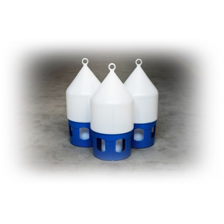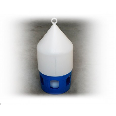 Adăpătoare din plastic pentru porumbei cu capacitatea de 3.5 litri cu cu posibilitate de agățare suspendat. Este compusă din două piese: partea superioara care conșine un mâner solid care se utilizează pentru deplasarea și suspendarea adăpătorului iar partea de jos albastră este zona de acces la apă cu închidere tip baionet. Este foarte practic și se curăță ușor. Dimensiuni: fi 20 x h=50 cm, Marca: Polmark.