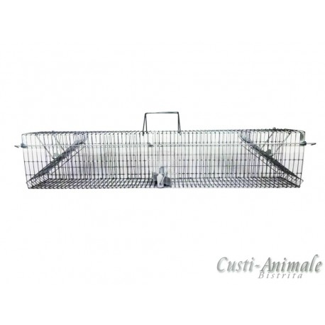 Capcana ecologica pentru rozatoare si animale mici greu de capturat, prevazut cu doua intrari, cu pedala, confectionata din plasa de sarma galvanizata. Foarte eficienta atat de expus in interior cat si in exterior.Prevazut cu manere.