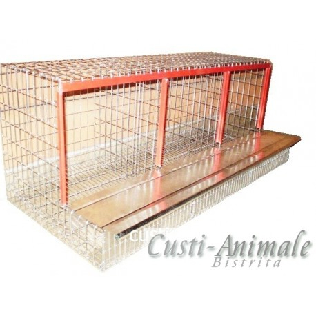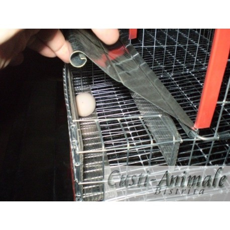Prevazut cu trei locuri de ouat, ideal pentru gaini de rasa medie, confectionat din plasa de sarma zincata, grilajul podelei permite eliminarea dejectiilor astfel ouale vor ramane curate, ouale se vor rostogolii in coletorul de oua cu un sertar inghis, de unde gainile nu mai pot avea acces la oua pentru a le manca sau sparge.