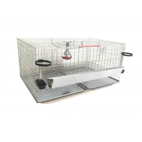Cușca este confecționată din plasă sudată galvanizată cu grosimea firului de 2 mm și 2,8 mm, tipul de plase folosit la lateralele și capacul cuștii este cu ochiuri de 25x50 mm, podeaua plasei cu ochiuri de 9x50 mm, fata cuștii conține grilaje reglabile la care ochiurile se dimensionează mai largi sau mai înguste în funcție de vârsta puilor. Se pot stabili ochiuri de la 3 la 6 cm lățime. Cușca este prevazută cu încă o podea care are rolul de a susține tăvile în care se scurge murdăria din întreaga cușcă, astfel pui vor avea curățenie și loc uscat în permanență și totodată facilizează operațiunea de curățare a cuștii mai rapidă si ușoară a crescătorilor de păsări și în timp ce se executa manevra de curățare puii nu sunt deranjați.