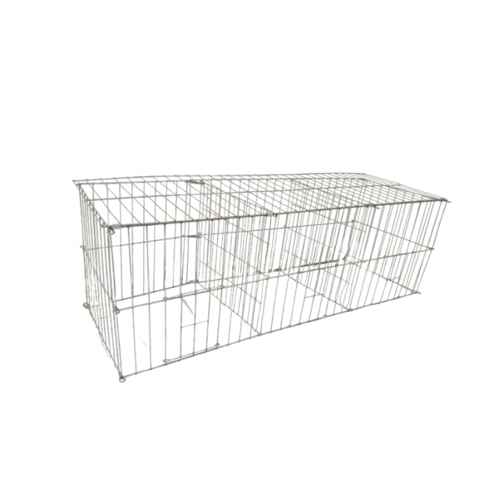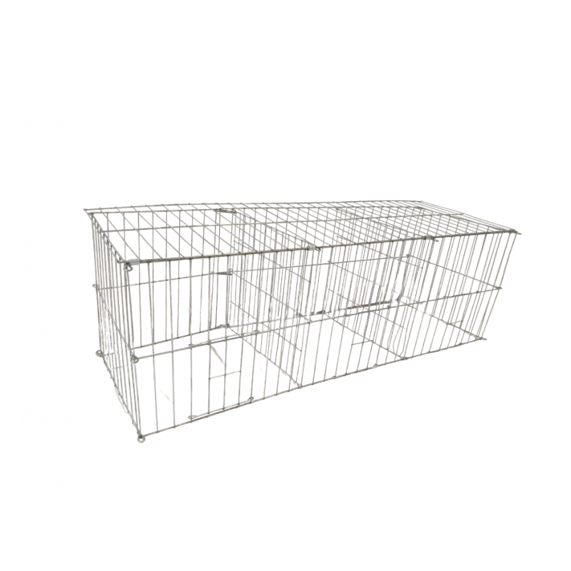 Cusca pliabila 120x40x40 cm pentru expunere porumbei si pasari, compusa din 3 boxe. Confectionata din plasa sudata zincat cu panouri bordurate din sarma zincata de 4mm, barele transversale de 3 mm. Sistem de inchidere, blocare si se pliaza la lungimea totala de 120 cm. Este foarte usor de transportat in masini mici. Dimeniuni desfasurat: 120x40x40cm , Dimensiuni pliat: 160x40x40cm