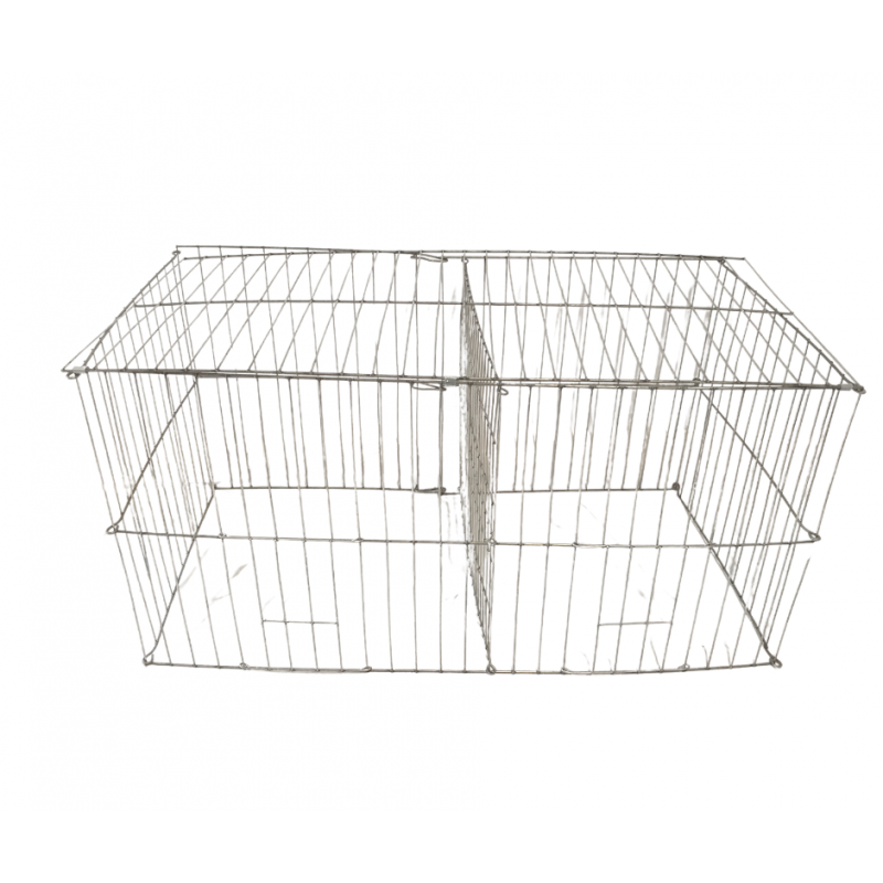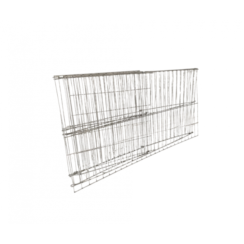 Cusca este cu panouri bordurate din sarma zincata de 4mm, barele transversale de 3 mm. Sistem de inchidere, blocare si se pliaza la lungimea totala de 120 cm. Este foarte usor de transportat in masini mici.