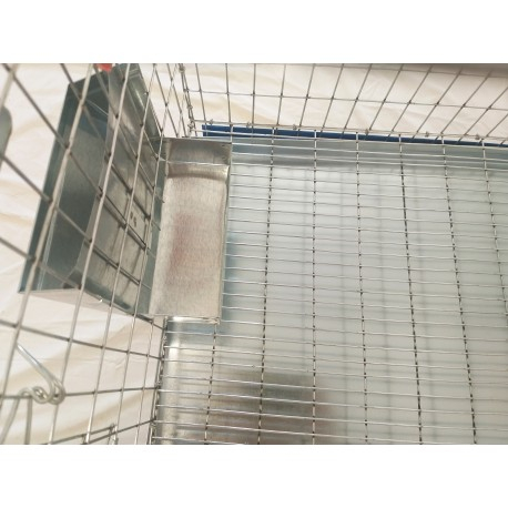 - doua tavi pentru curatarea dejectiilor confectionate din tabla zincata, cu margini inalte de 3.5cm si colturi inchise, ele fiind situate sub grilajul de podea al custii. Tavile se scot cu usurinta din partea din fata a custii pentru curatarea periodica.