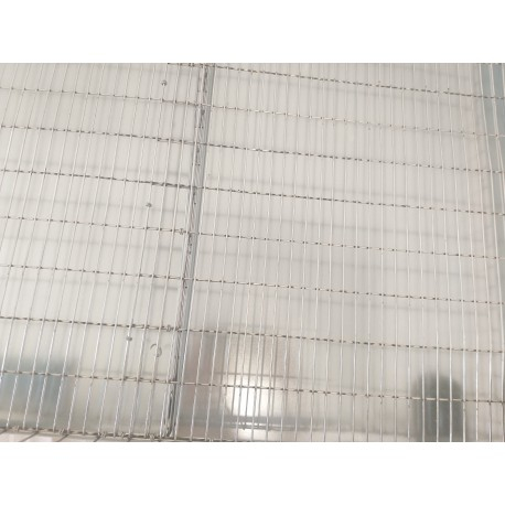 - cusca este prevazuta cu grilaj de podea dubla, cu densitatea plasei de 50x13mm cu grosimea firului de 2mm, aceasta podea permite evacuarea dejectiilor si murdariei cu usurinta din cusca in tavi.
