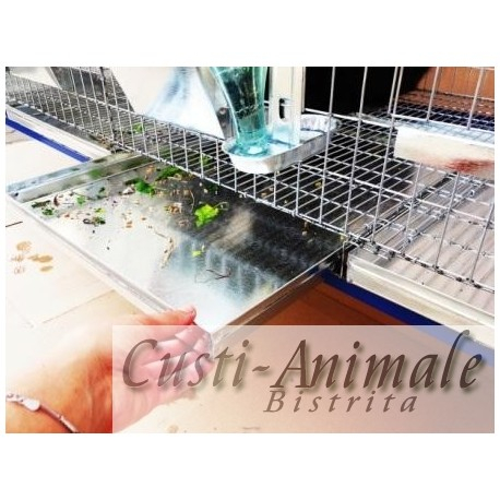 • patru  tavi pentru curatarea dejectiilor confectionate din tabla zincata, cu margini inalte de 3.5cm si colturi inchise, ele fiind situate sub grilajul de podea al custii. Tavile se scot cu usurinta din partea din fata a custii pentru curatarea periodica.