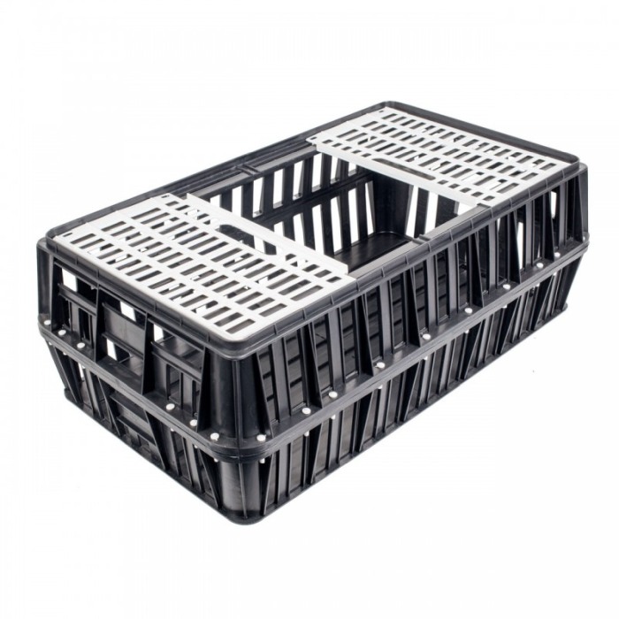 Lada de transport din plastic pentru pasari si animale, fabricat din plastic de calitate Premium, foarte calitativ si rezistent. In partea de sus sunt doua usi glisante foarte usor de folosit. Lada este fixa fara sistem de pliere,  astfel se pot foarte usor stivuii mai multe lazi una peste alta rezistand cu chiar si la greutati mari. Greutatea lazii: 5,50 kg.