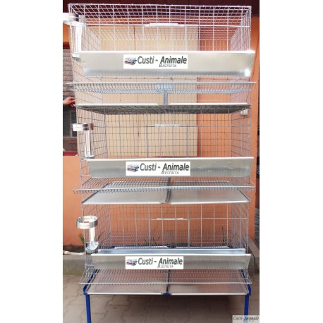 Modul Cusca pentru gaini ouatoare cu trei nivele, metalica din plasa sudata galvanizata, cu colector de oua, hranitoare furaj, adapatoare si tavi pentru curatarea dejectiilor. Capacitatea pentru 27-30 gaini ouatoare.Inclus raftul metalic de sustinere.