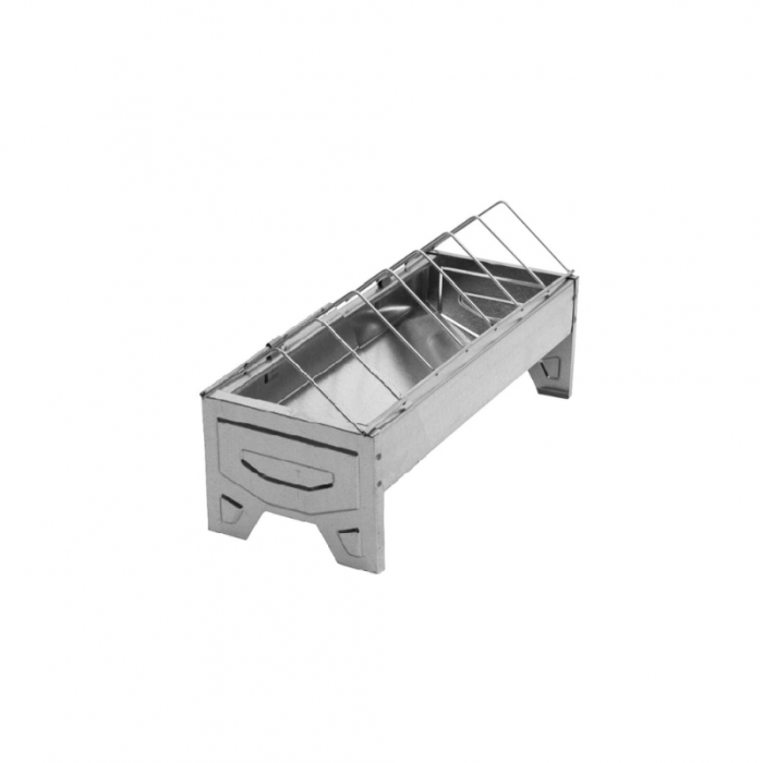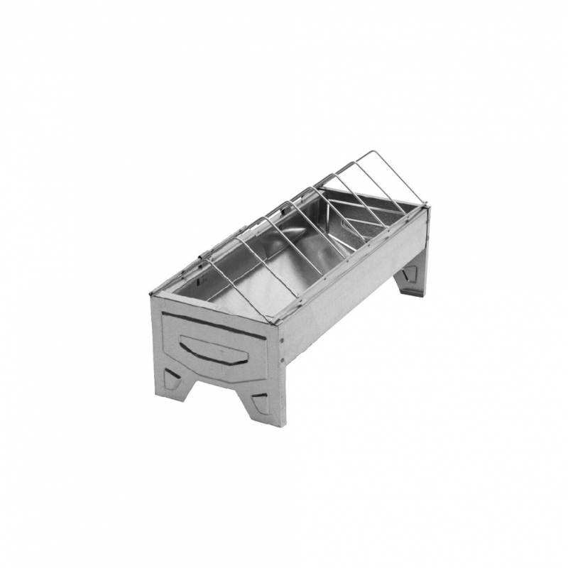 Hranitoare pentru pui si pasari adulte fabricata din tabla zincata, dotata cu grila anti-risipa care se reabateaza pentru realimentare si curatare, robusta usor de utilizat. Se recomanda utilizarea la administrarea furajului pentru pui peste 3 saptamani. Dimensiune: Lungime 30 cm x latime 13 cm x inaltimea 15 cm. Accesul la furaj este la inaltimea de 10 cm. Distanta intre grile este 4,8cm.