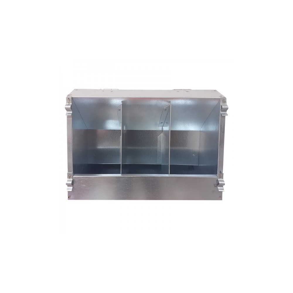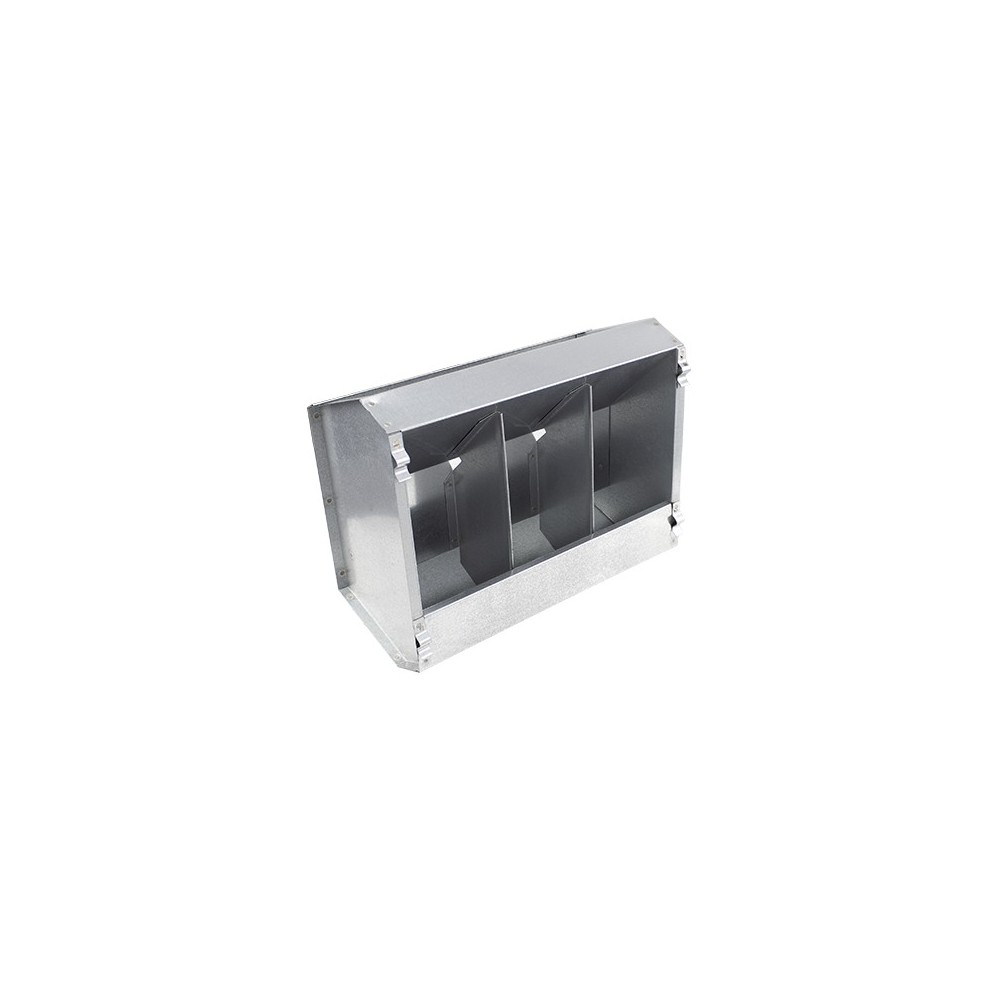 Hranitor pentru iepuri, atasabil pe custi, rezervor cu capacitatea de 400 gr de furaj. Poate fi folosit pentru cerale sau furaj granulat. Accesul la hrana este din interierul custii, pe parcurs ce se termina furajul se va alimenta din rezervor. Confectionat din tabla zincata si prevazuta cu sisteme de prindere care ajuta la fixarea pe cusca. Dimensiuni: 16x7xh-13 cm