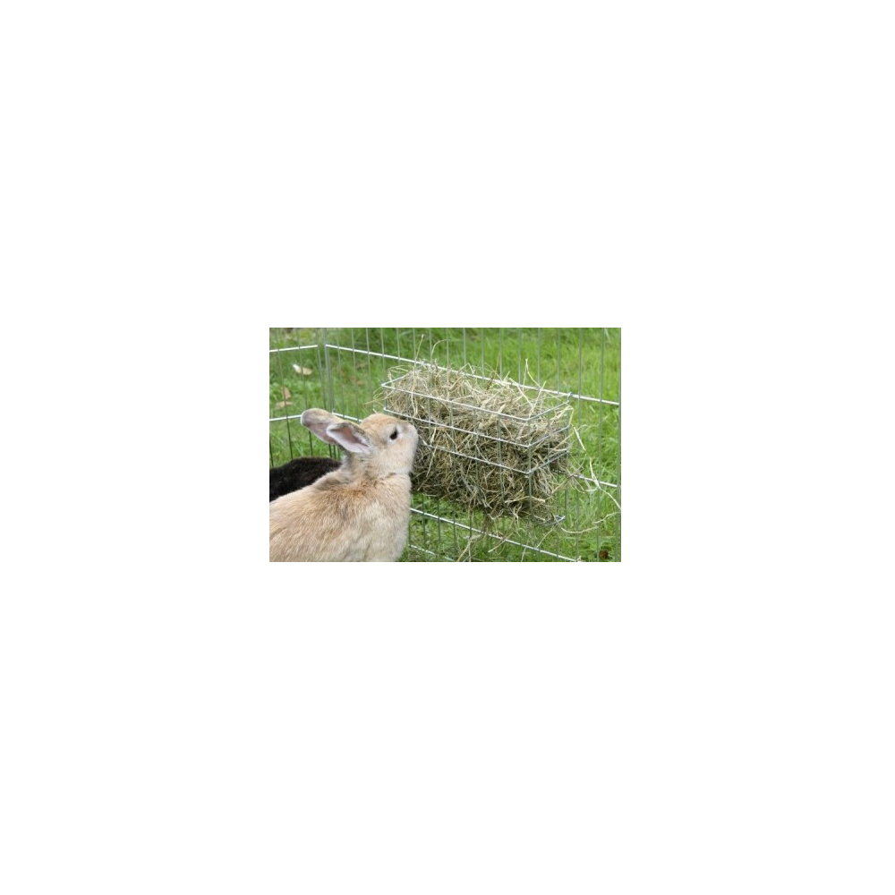 Aceasta hranitoare din plasa pentru iepuri se utilizeaza pentru alimentarea fanului uscat sau lucernei. Cu ajutorul sistemelor de agatare se poate monta foarte usor atat la cusca de iepuri cat si pe gard. Hrana se alimenteaza din exterior usurand munca crescatorului. Este fabricat din bare de otel sudate, este robust si rezistent in timp. Aceste hranitoare sunt foarte eficiente deoarece grilajele nu lasa iepurii sa traga mai mult fan decat au nevoie impiedicand risipa si deasemenea adapostul iepurelui se mentine mai curat.