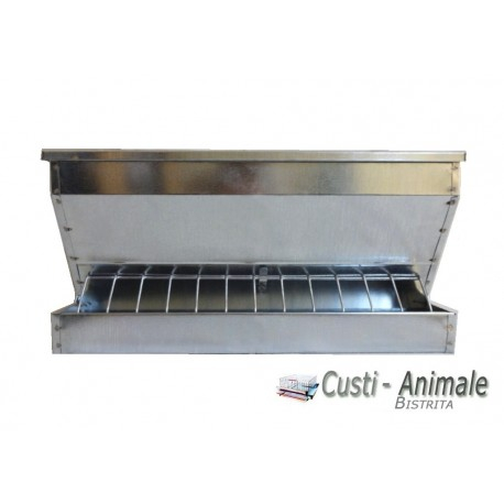 O hranitoare ideala pentru toate tipurile de pasari de curte din gospodearie, special gandit pentru pastrarea furajului uscat fara orice fel de contaminare si in special pentru a putea asigura hrana constanta pentru o perioada mai lunga de timp a pasarilor. Hranitoarea este fabricata din tabla galvanizata cu grosimea de 4 mm, rezervorul contine capac care se detaseaza usor pentru alimentare. Acest tip de hranitoare se poate folosii atat la pui, porumbei cat si la alte pasari de curte adulte. Pentru a evita blocarea furajului in zonele de scurgere a rezervorului, se recomanda alimentarea acestuia cu furaj sub forma de granule sau boabe.