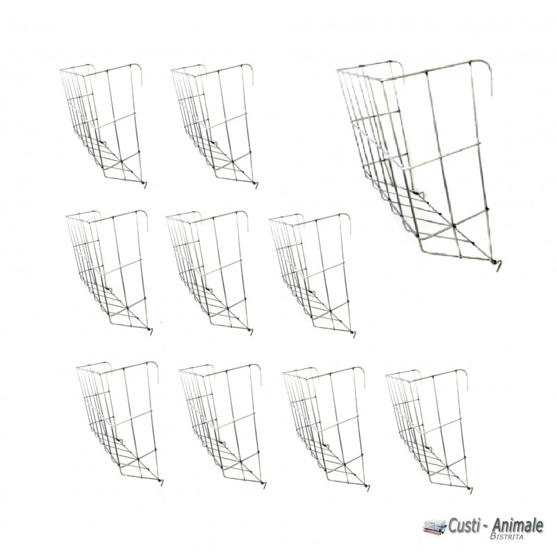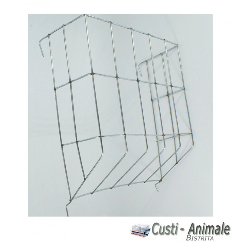 Aceasta hranitoare din plasa pentru iepuri se utilizeaza pentru alimentarea fanului uscat sau lucernei. Cu ajutorul sistemelor de agatare se poate monta foarte usor atat la cusca de iepuri cat si pe gard. Hrana se alimenteaza din exterior usurand munca crescatorului. Este fabricat din bare de otel sudate, este robust si rezistent in timp. Aceste hranitoare sunt foarte eficiente deoarece grilajele nu lasa iepurii sa traga mai mult fan decat au nevoie impiedicand risipa si deasemenea adapostul iepurelui se mentine mai curat.