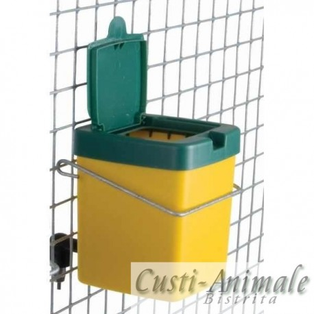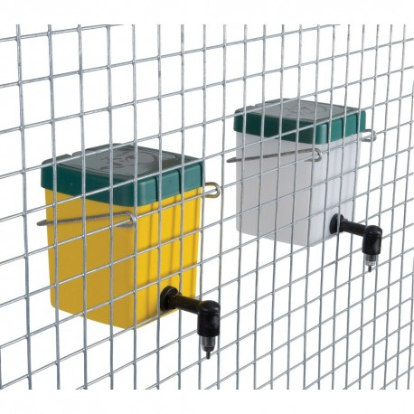 Se prinde foarte ușor pe cușca, având acces la alimentarea cu apa prin ridicarea unui capac. Apa din acest adăpătoare nu se poate contamina cu dejecții și va ușurează foarte mult întreținerea și de asemenea dozarea tratamentelor.