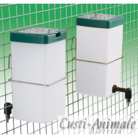 Adapatoare pentru iepuri cu niplu adasabil pe cusca, cu capacitate de 1 litru. Se prinde foarte usor pe cusca, avand acces la alimentarea cu apa prin ridicarea unui capac. Apa din acest adapator nu se poate contamina cu dejectii si va usureaza foarte mult intretinerea.