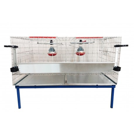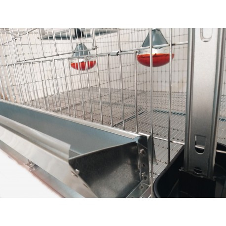 Aceste cuști sunt modulare, se pot stivii una peste alta până la 2 sau 3 nivele, prima cușcă de jos se susține pe un suport metalic iar celelalte suprapuse. Astfel se economisește din spațiul camerei de creștere maximizând chiar de 3 ori numărul de pui comparativ cu creșterea la sol. Suportul metalic cu picioare se comandă separat din site.