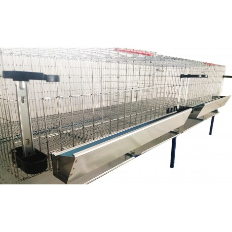 Din plasa de sarma zincata din producti proprie Custi-Animale Bistrita. Caracteristicile custii respecta normele bunastarii pasarilor prevazuta de Uniunea Europea. Podeau custii foare deasa cu ochiuri de 9/50 mm cu grosimea firului 2 mm. Lateralele custii cu ochiuri de 15/50 mm tot cu grosimea de 2 mm. Tavile pentru dejectii confectionate din tabla galvanizata.