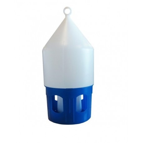 Adăpătoare din plastic pentru porumbei cu capacitatea de 7 litri cu cu posibilitate de agățare suspendat. Este compusă din două piese: partea superioara care conține un mâner solid care se utilizează pentru deplasarea și suspendarea adăpătorului iar partea de jos albastră este zona de acces la apă cu închidere tip baionet. Este foarte practic și se curăță ușor. Dimensiunea este de ø 20,20x50,5 cm. Marca: Polmark